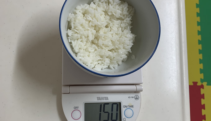 ご飯150gを冷蔵庫でひえ冷えに冷やしました。