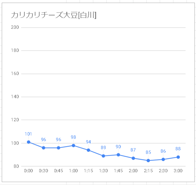 白川さんが、カリカリチーズ大豆食べて血糖値を測ってみた。