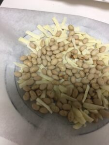 大豆ととろけるチーズを混ぜて