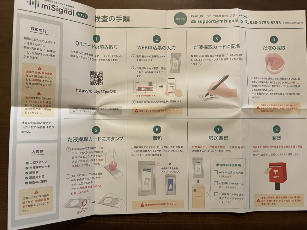 を遺伝子から検査できる、マイシグナル ナビの検査キットが届きました。