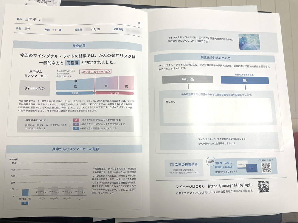 マイシグナルライトは、検査結果はこの1枚だけでしたけど、これの上位版のマイシグナルスキャンはもう少し情報量が増えるのかな?
