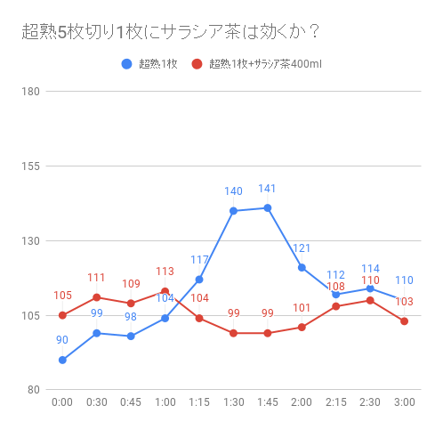 では、食パンを食べる前にサラシア茶を400ml飲んだらどうなるか?