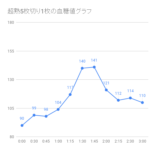 まずは、超熟5枚切り1枚の血糖値をおさらいしておきましょう。